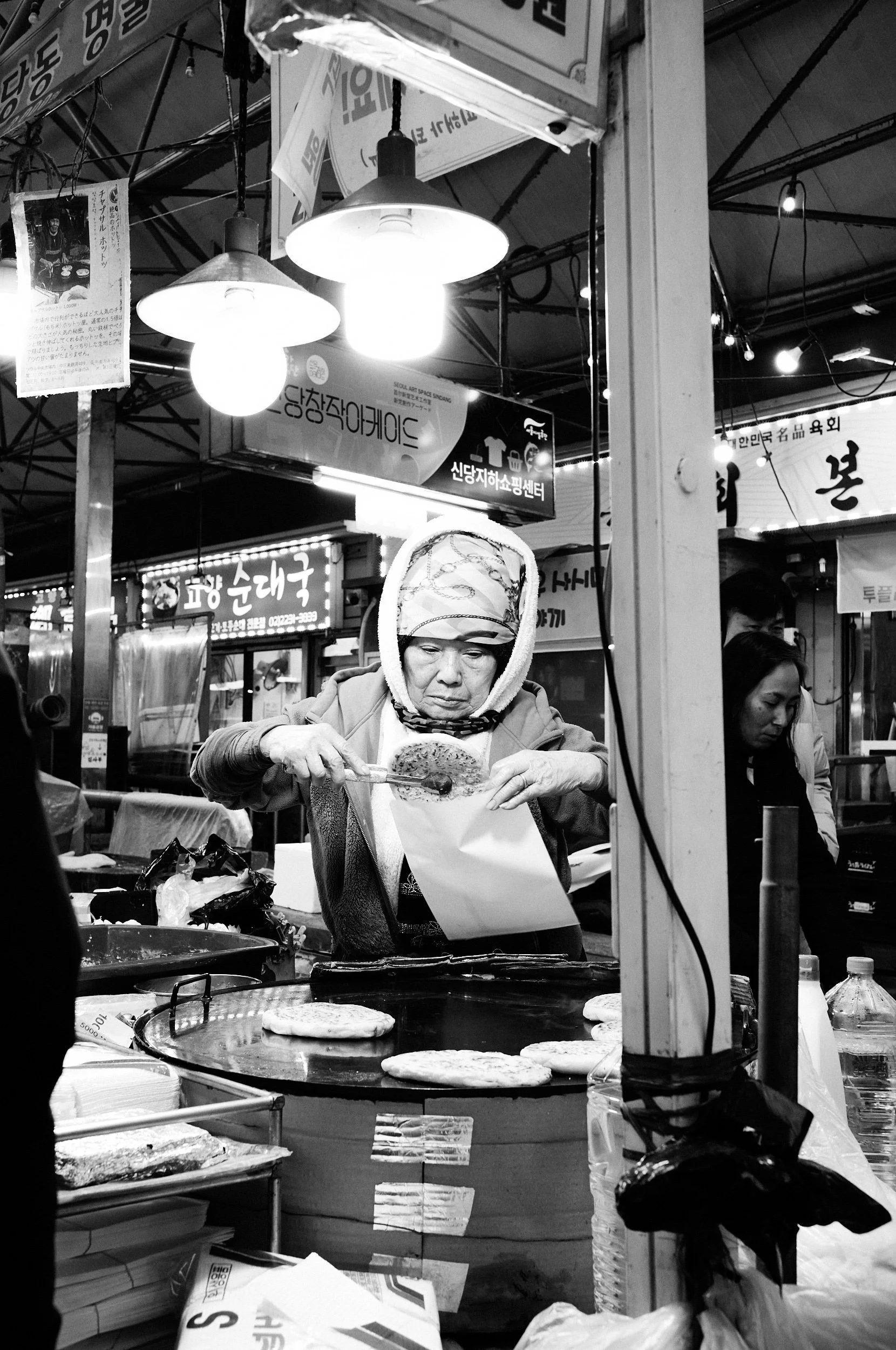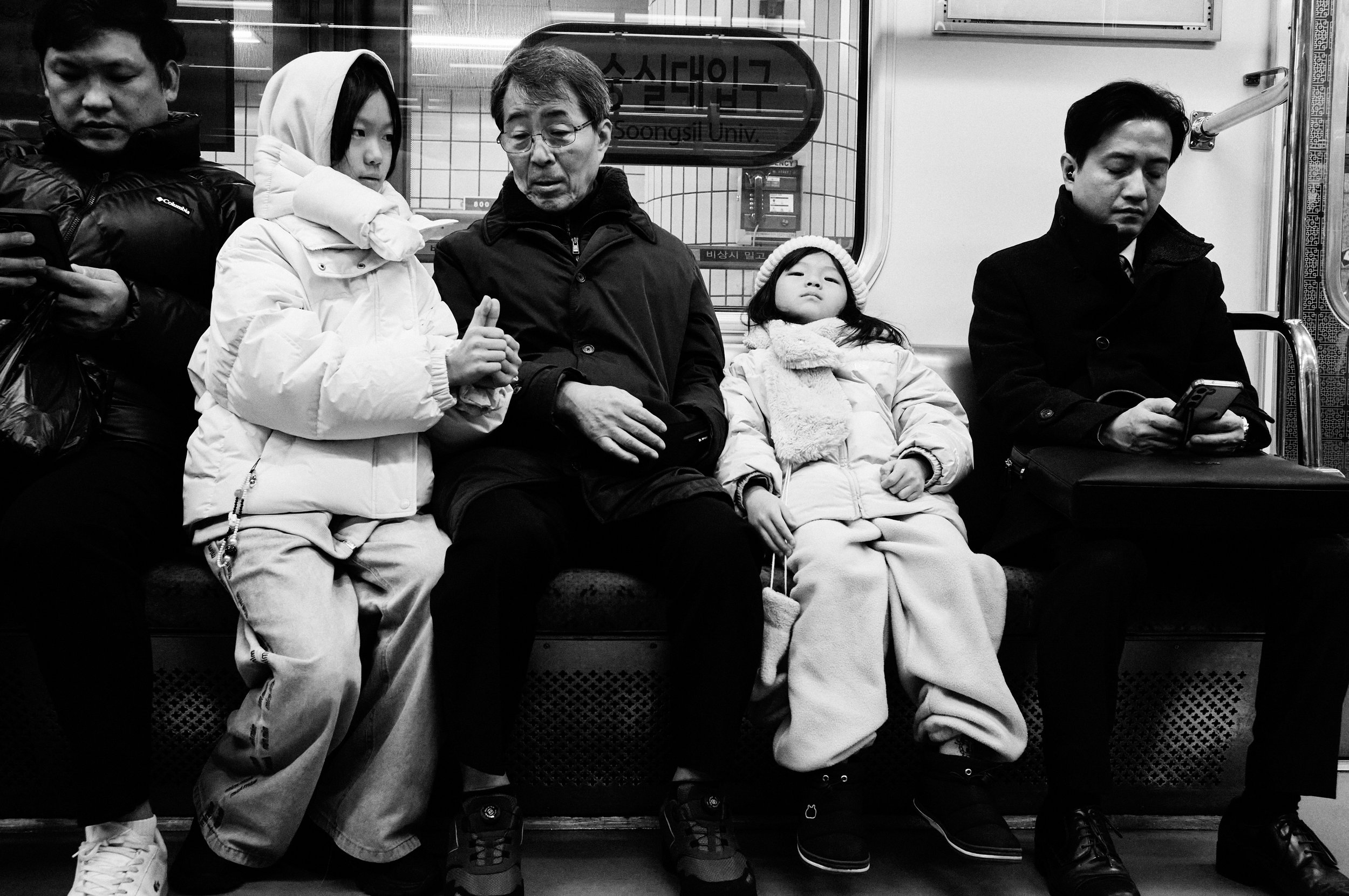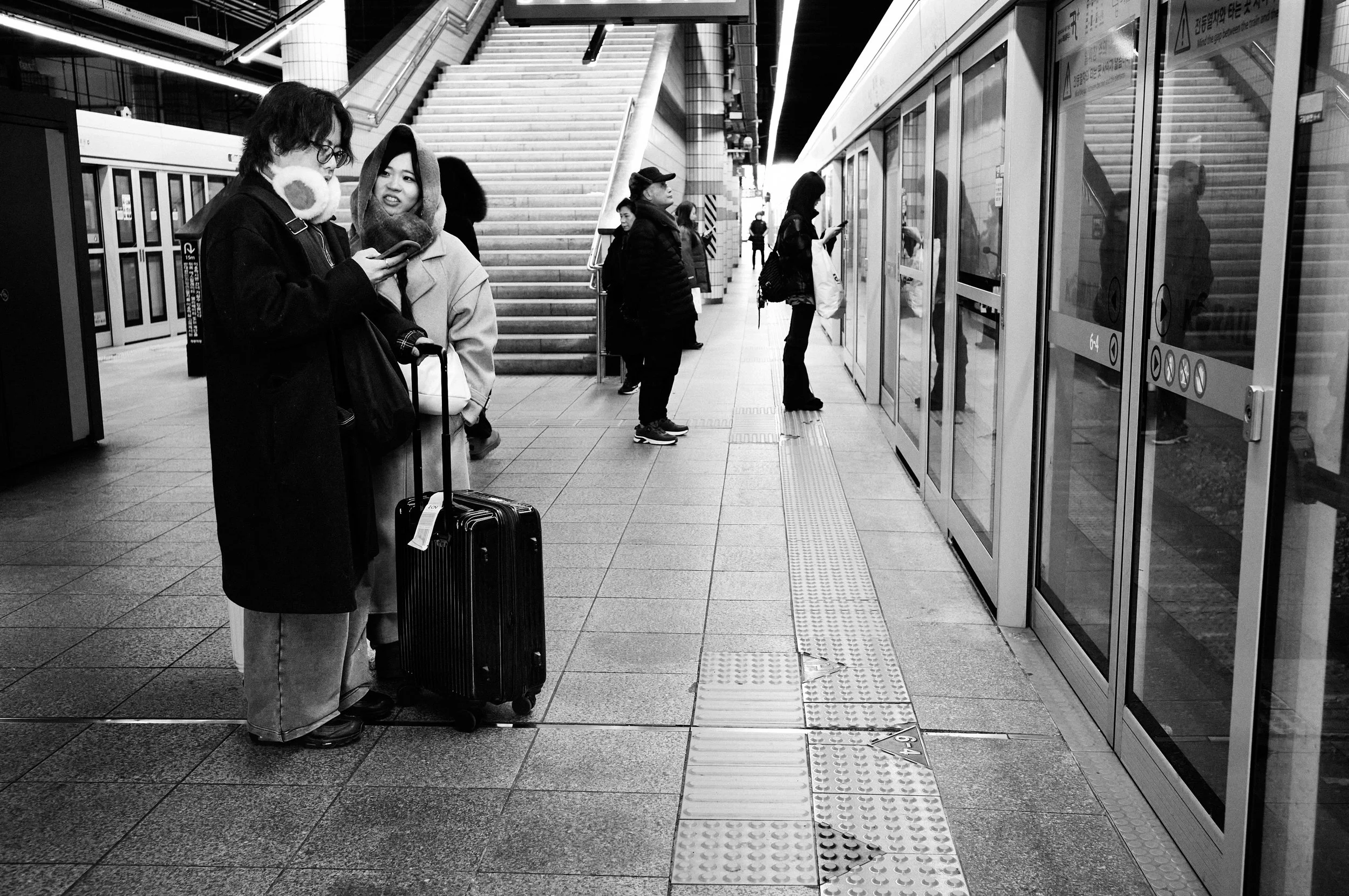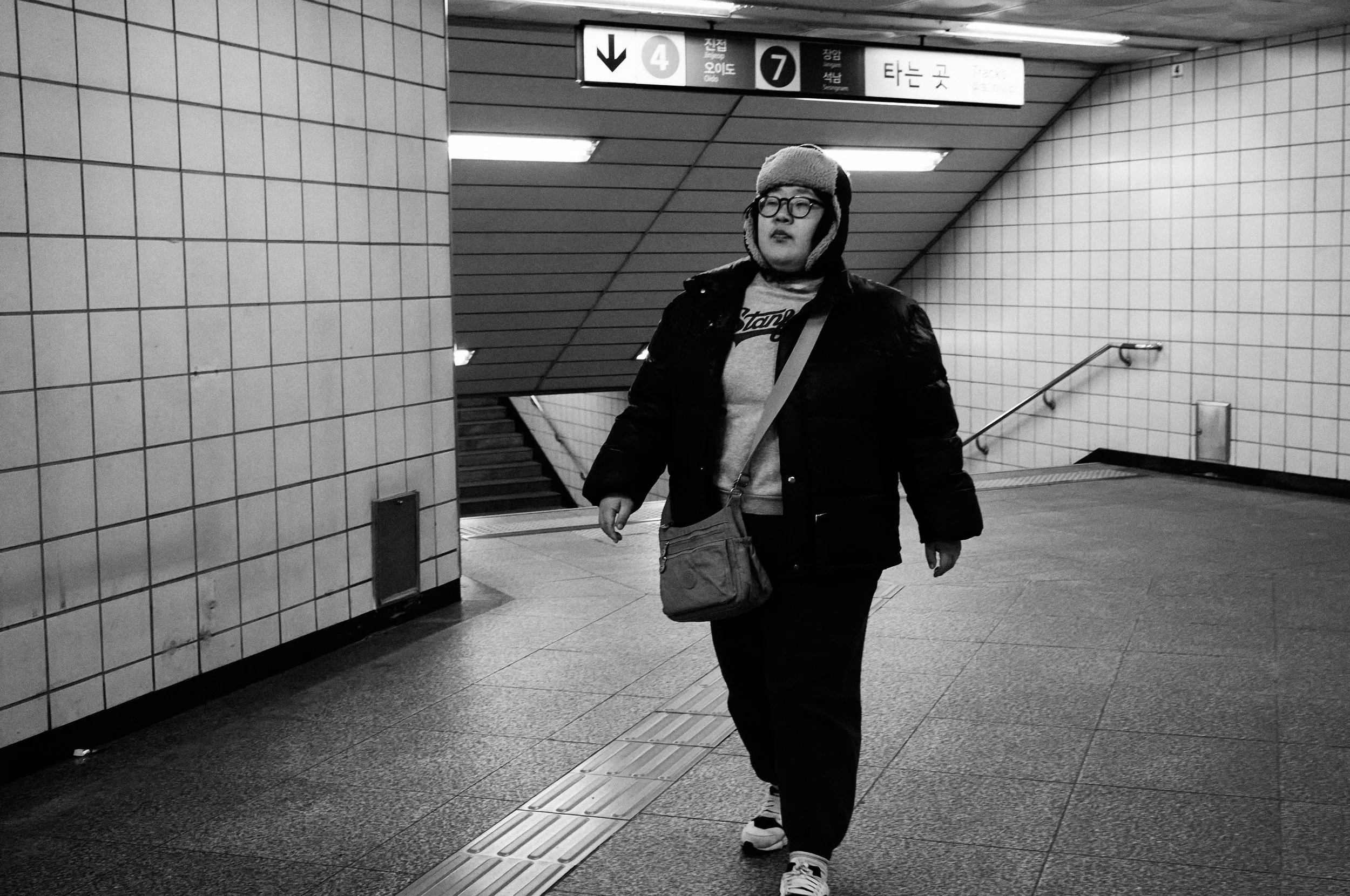 A study of movement, contrast, and fleeting human presence in the urban fabric of Seoul.